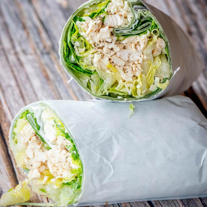 Chicken finger, romaine, romano and Caesar dressing.